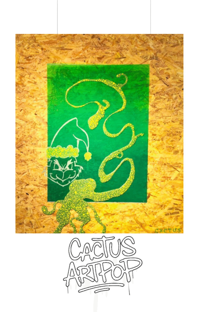 Inspired by the iconic mischief of the Grinch, Mean Green blends playful rebellion with vibrant texture.